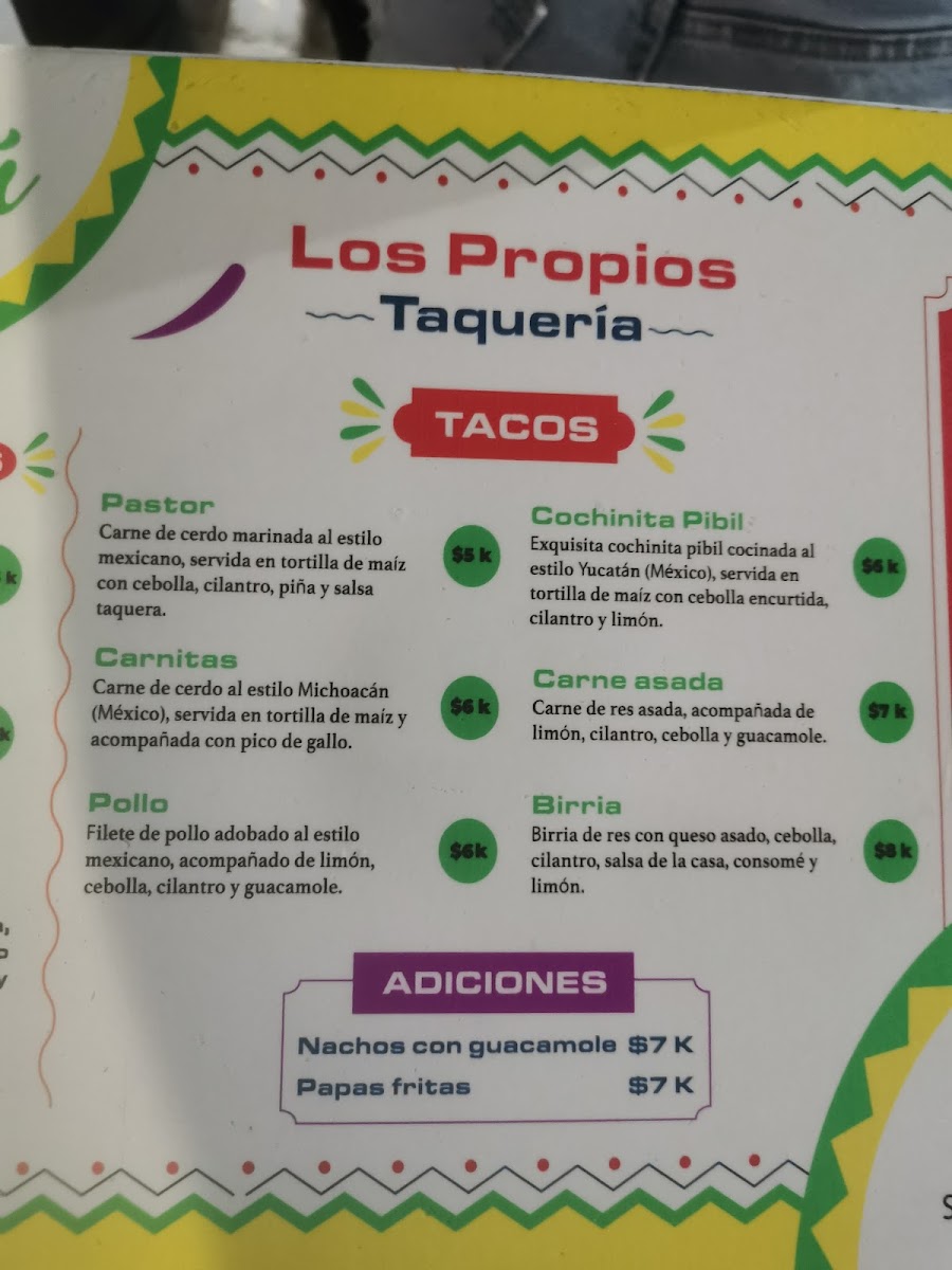 Welcome to Los Propios Tacos, the beloved taco stand nestled in the heart of Laureles, Medellín. This culinary gem stands out for its authentic Mexican flavor, thanks to a skilled chef who utilizes his family recipes. The menu is a fiesta for your taste buds, featuring an array of delicious tacos and burritos that have garnered rave reviews from locals and visitors alike.